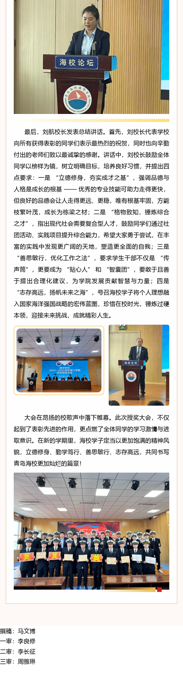 【全环境立德树人】立德修身担使命,格物致知启新航——青岛海校海洋学院2024-2025学年第二学期学生授奖大会圆满举行